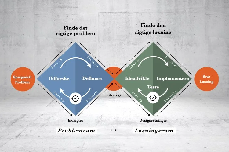Lær processen, værktøjerne og logikken i brugercentreret design og design tænkning. Med “Double Diamond” som reference får du et grundigt kendskab til begge “diamanter” og de centrale leverencer.